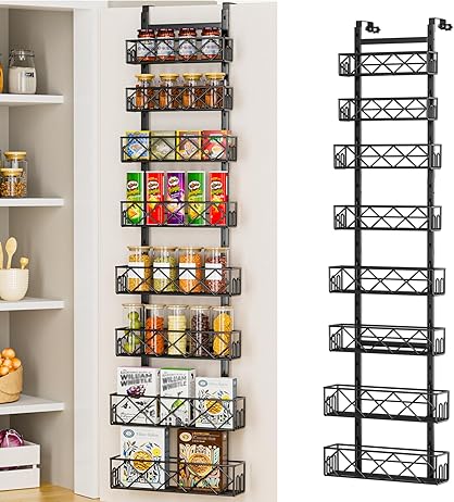 Buy nowMaximize your kitchen storage with this Over-the-Door 8-Tier Pantry Organizer. Measuring 13.78" W x 65.16" H, it features adjustable baskets perfect for spices, cans, and more. Crafted from sturdy, rust-resistant metal, it securely fits doors up to 2 inches thick, providing a durable and versatile storage solution.