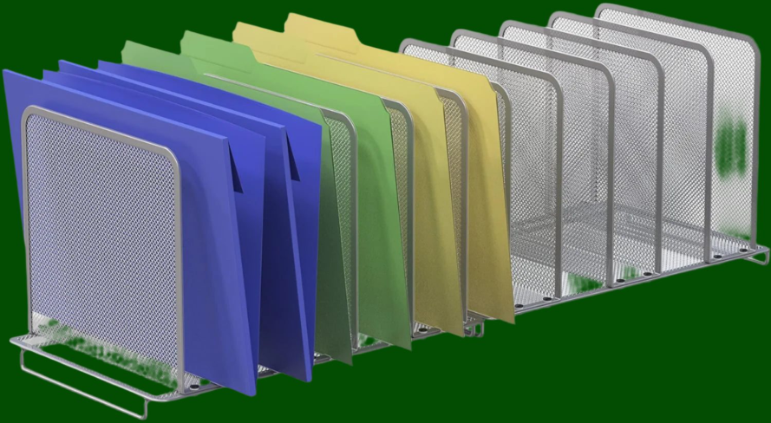 Buy nowThe SimpleHouseware Expandable 5 Section Upright File Sorter Organizer is a compact and durable solution for organizing documents. Each unit features five 2-inch wide vertical sections, allowing for efficient categorization of files. Constructed from sturdy silver steel mesh and wire, this organizer ensures long-lasting use.